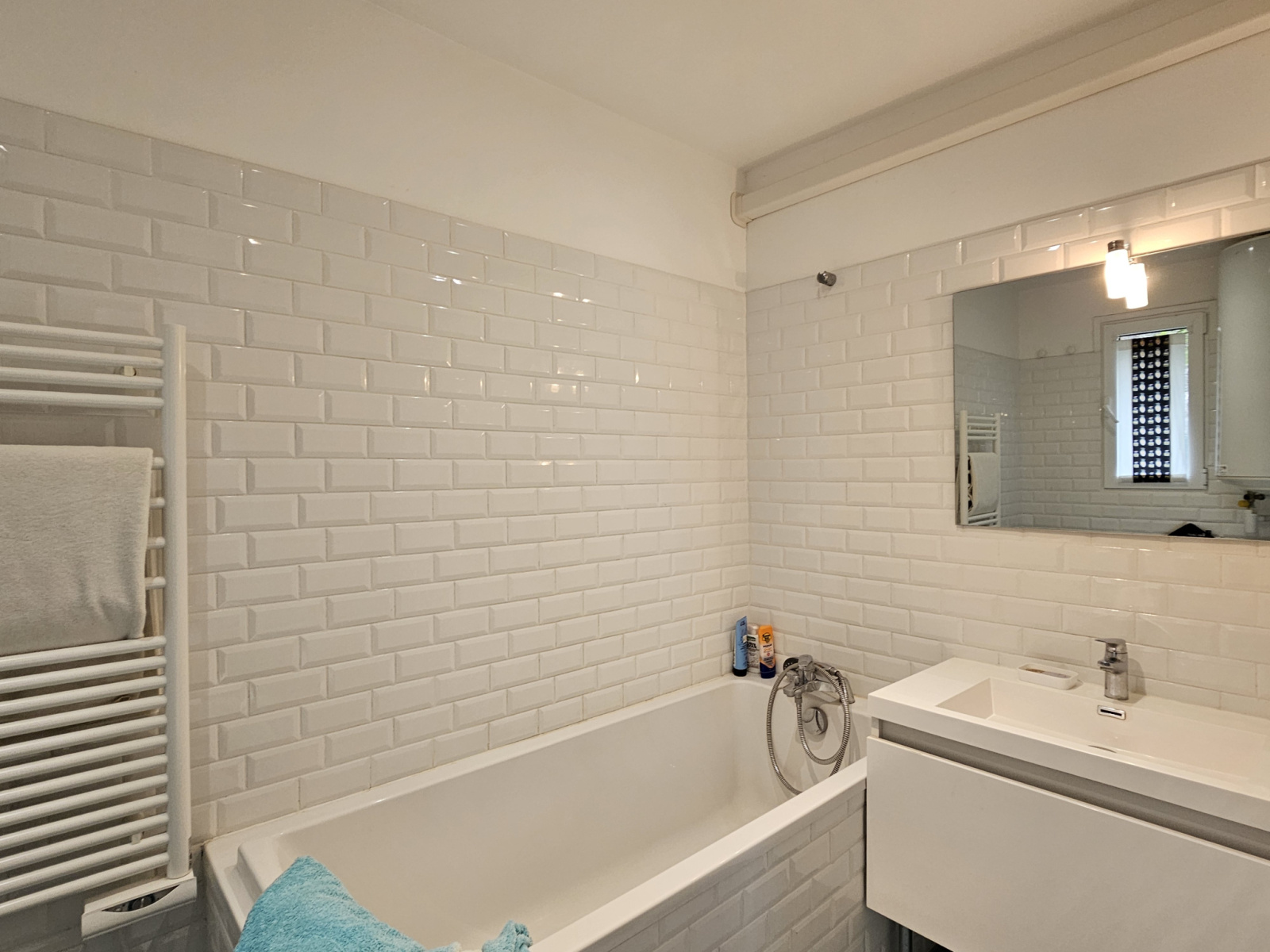 Le jardin clos est joliment arboré et aménagé avec son espace piscine chauffée, un rangement et local technique.