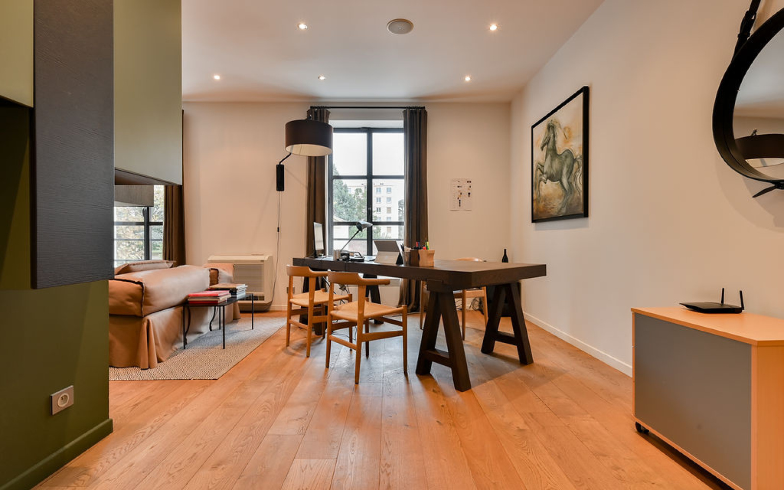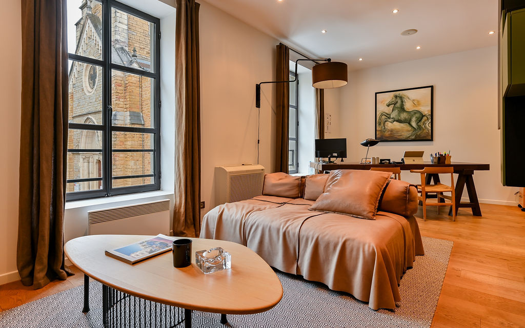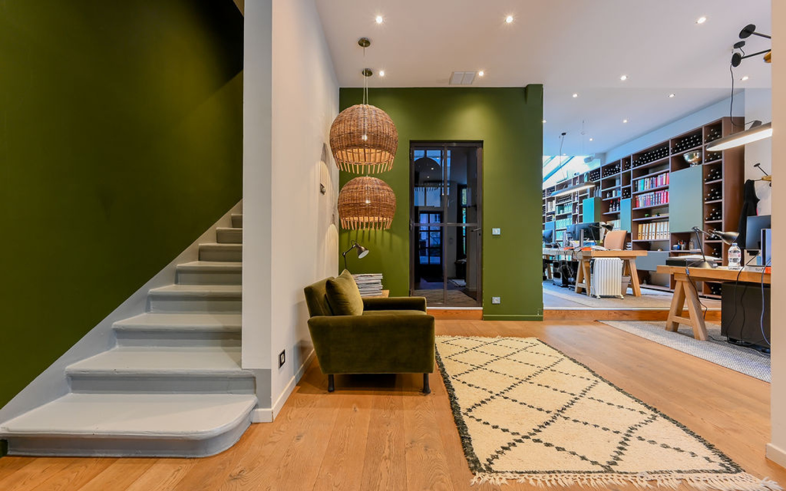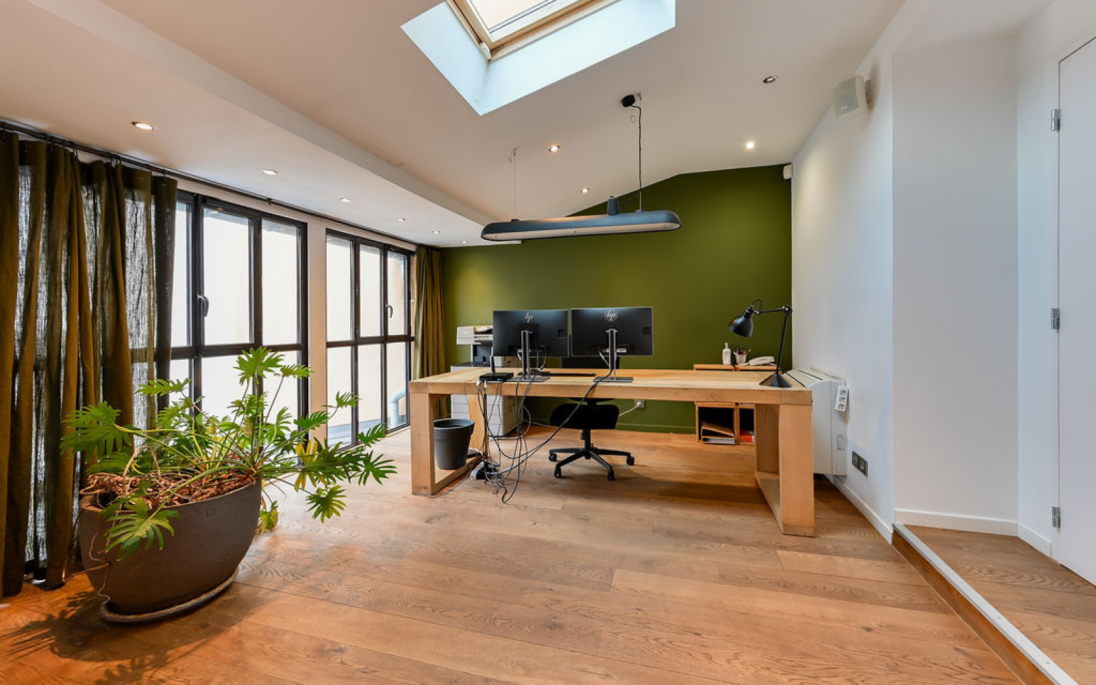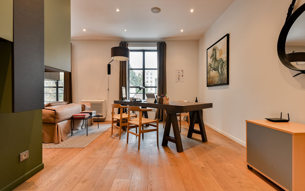 Champagne-au-Mont-d'Or (69410)CO-EXCLUSIVITE - CHAMPAGNE AU MONT D'OR, rare, centre du village, très belle maison de village traversante entièrement réhabilitée en 2012 par un architecte de renom de 150 m2 habitables environ. Elle se compose au rdc d'une pièce de vie lumineuse d'environ 70 m2 avec un coin cuisine USA bénéficiant d'une très belle hauteur sous plafond avec un esprit jardin d'hiver, une pièce fermée (ou chambre), toilettes. A l'étage 2 chambres dont une suite avec salle de douche. Belles prestations, parquet massif, aménagement sur mesure, isolation thermique et phonique, huisseries en aluminium. Maison à double destination habitation ou bureau.