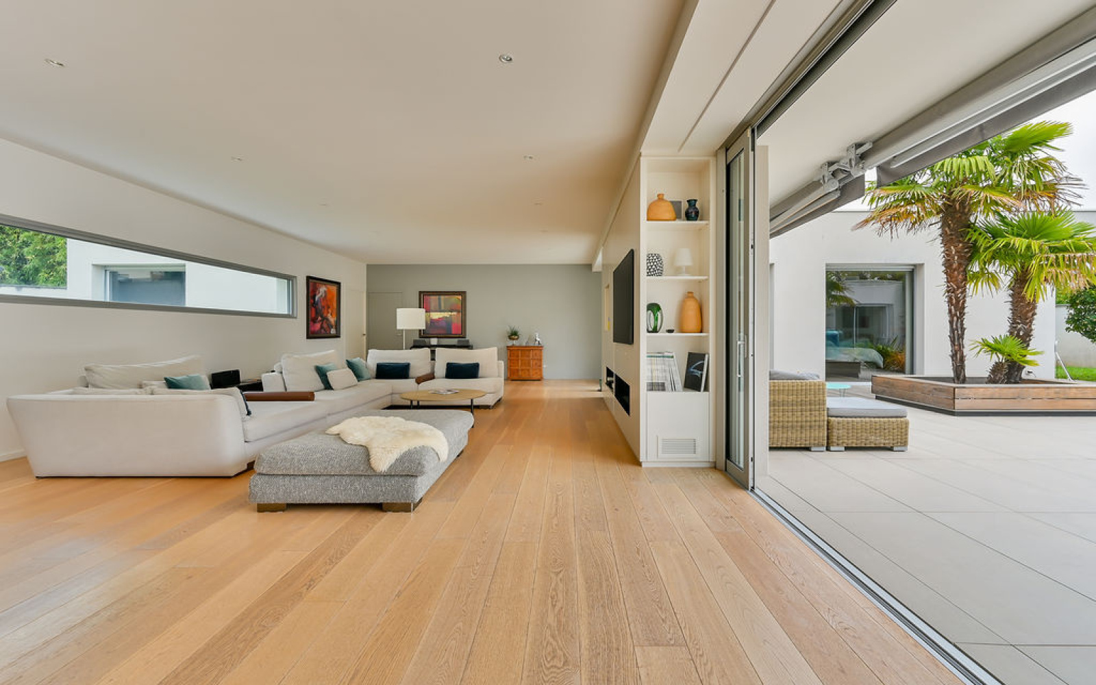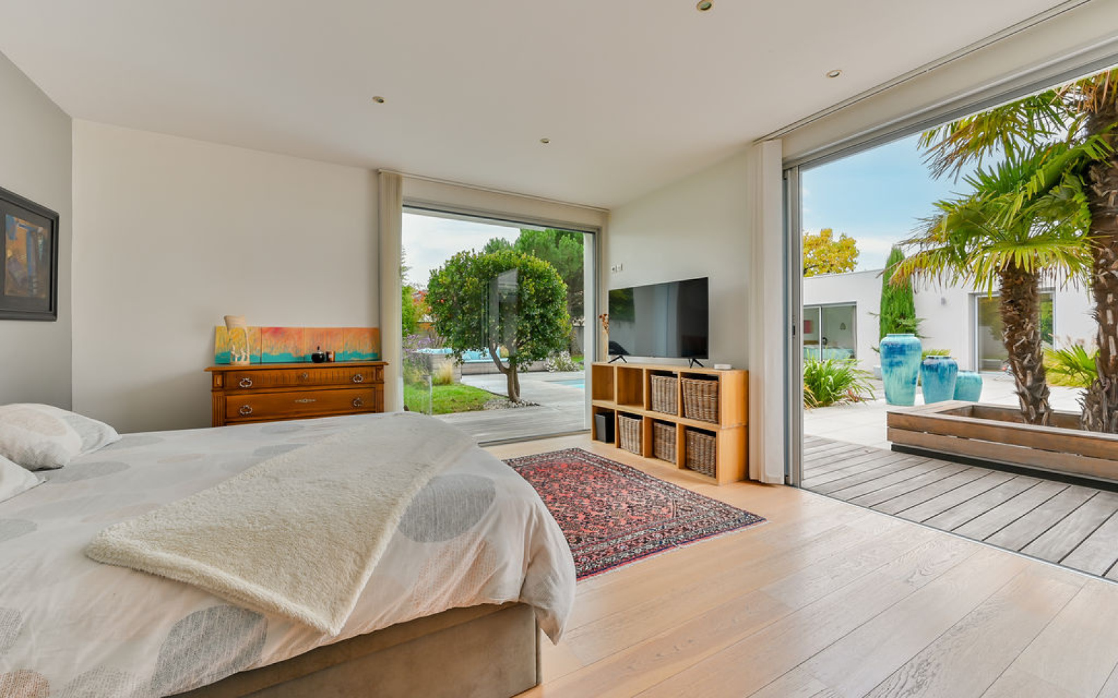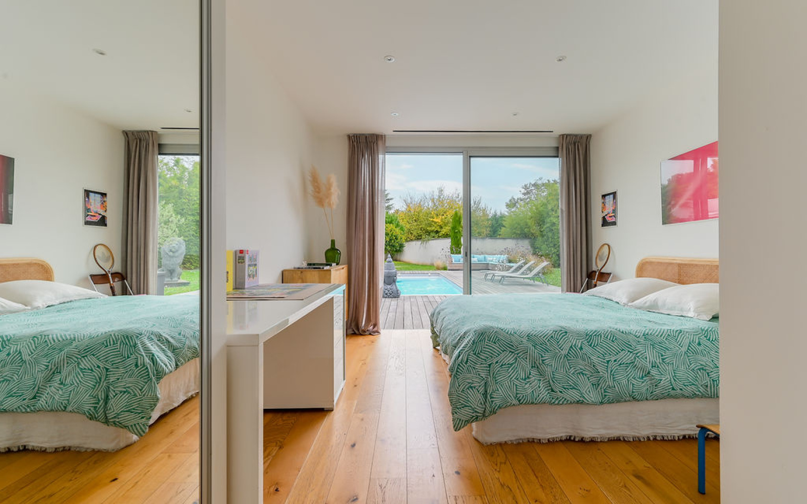 Écully (69130)ECULLY, rare, secteur calme et résidentiel, à proximité immédiate du centre du village, des écoles, des commerces et transports, superbe maison contemporaine de plain-pied de 294 m² carrez et 302 m² avec annexe sur un terrain arboré et paysagé de 2 224 m² avec piscine. La maison se compose d'une entrée avec vestiaire, d'une très belle pièce de vie de 125 m² environ avec cheminée entièrement ouverte sur la terrasse de 267 m² et la piscine, une suite parentale avec dressing et salle de bains donnant sur piscine et terrasse, une suite avec sa salle de douche, une 3eme chambre ou bureau. Dans l'autre aile de plain-pied, un dégagement dessert 2 autres chambres, une salle de bains, toilettes, espace buanderie. Toutes les chambres sont climatisées. Le jardin plat et arboré bénéficie d'une piscine chauffée de 8x4m² avec rideau électrique. Un garage couvert, fermé et sous alarme, un carport, un local piscine de 3 m² (PHmetre et gestion du sel automatiques, pompe à chaleur, pompes et filtres), un abri de jardin de 12 m² et 7 places de parkings extérieures complètent ce bien d'exception. Belles prestations, quartier recherché sur Ecully, chauffage au sol, climatisation, maison contemporaine très lumineuse et entièrement de plain-pied.