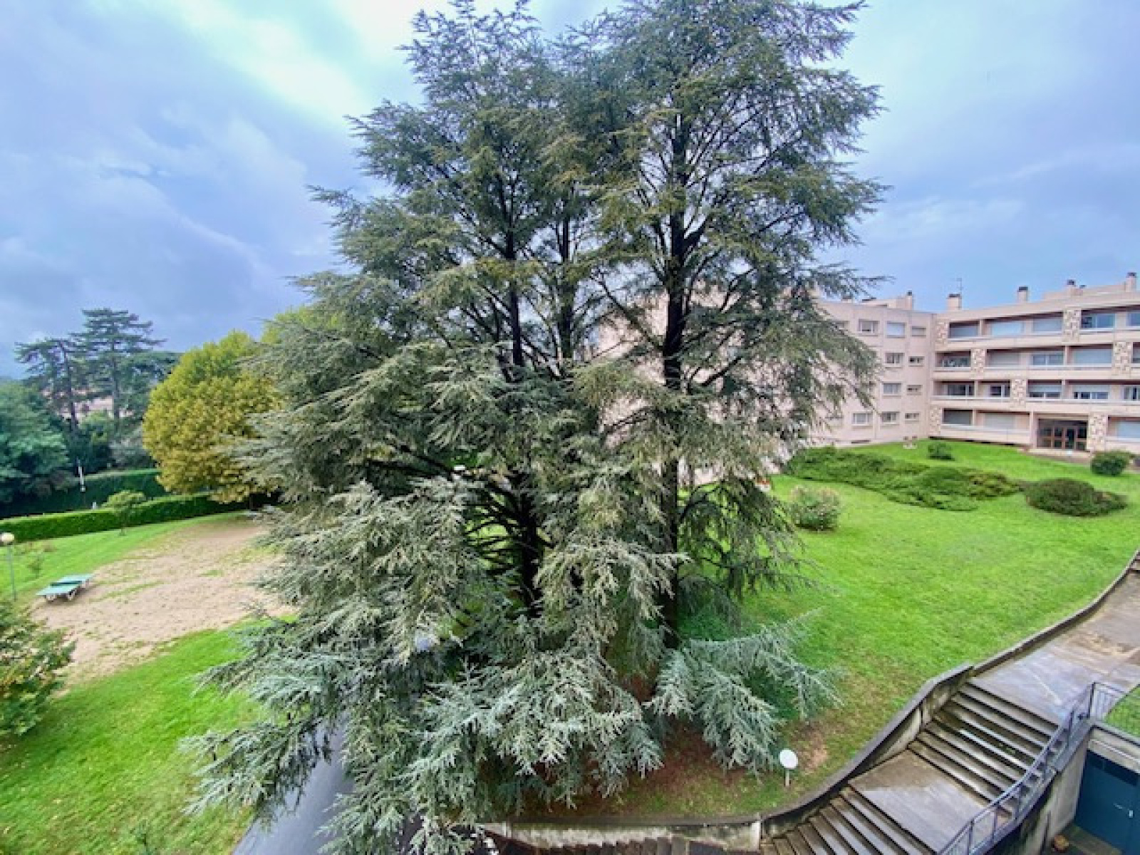 Appartement spacieux offrant une luminosité maximale avec de grandes ouvertures (traversant est - ouest). Aucun vis-à-vis : vue sur parc à l'ouest et aperçu Fourvière et Lyon côté est.