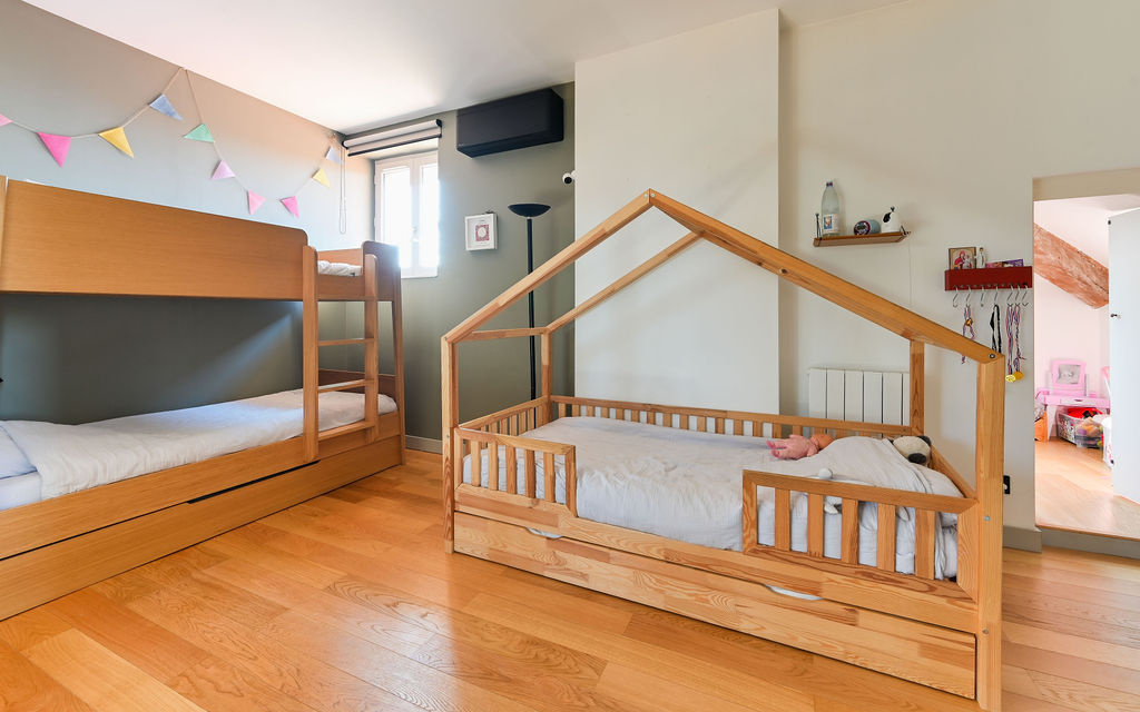 Écully (69130)Ecully - Proche du centre, au sein d'une magnifique propriété bourgeoise, découvrez cet appartement de 167m2 env. avec jardin de 600m2 carrez et 177m2 au sol. L'appartement situé au 2ème étage, a bénéficié d'une rénovation totale de qualité, il propose, au rez de chaussée, un spacieux salon traversant avec cheminée, une cuisine semi-ouverte équipée de la marque haut de gamme Valcuccine, une buanderie et la chambre parentale avec dressing et salle de bain. L'étage, dédié aux enfants, se compose d'un palier faisant office de salon TV, de deux belles chambres climatisées, avec grands placards, d'une salle de jeux et d'une salle de douche. Un bureau indépendant de 20m2 env. complète l'appartement. Un jardin de 700m2 (à usage privatif) avec cuisine d'été complète ce bien rare, ainsi qu'un garage (avec prise de recharge pour voiture) et deux places de stationnement. La copropriété a bénéficié de travaux réguliers et ne nécessite pas de travaux, ainsi la toiture a été entièrement rénovée en 2024 (couverture et isolation). Charges de copropriété : 1813€ / an, soit 151€ / mois. Pas de procédure en cours. 11 lots dont 3 lots d'habitation. DPE D / D