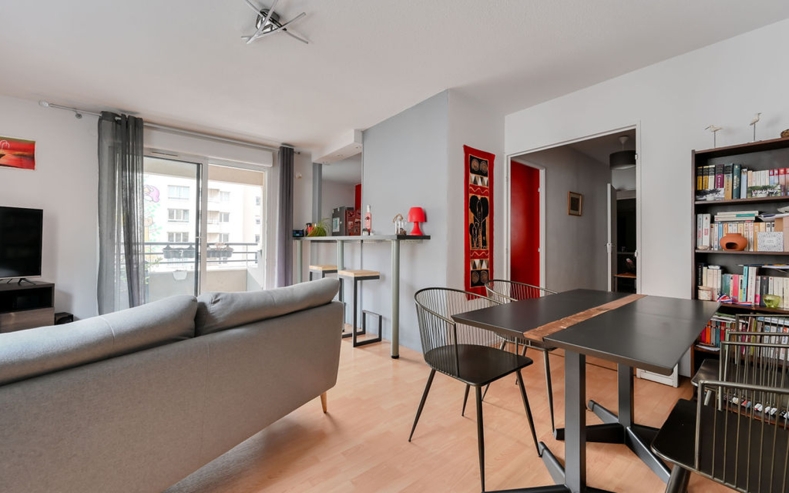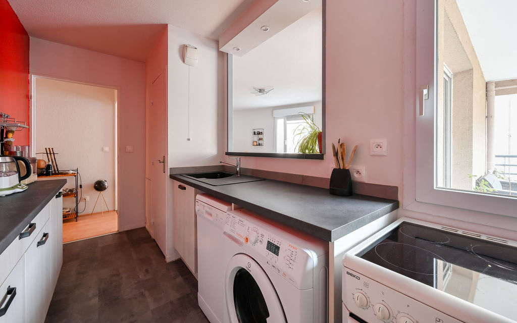 Dès l’entrée, vous découvrez un séjour avec cuisine semi-ouverte formant un espace de vie d’environ 30 m², largement ouvert sur un balcon exposé plein Sud, idéal pour profiter d’une belle luminosité tout au long de la journée.