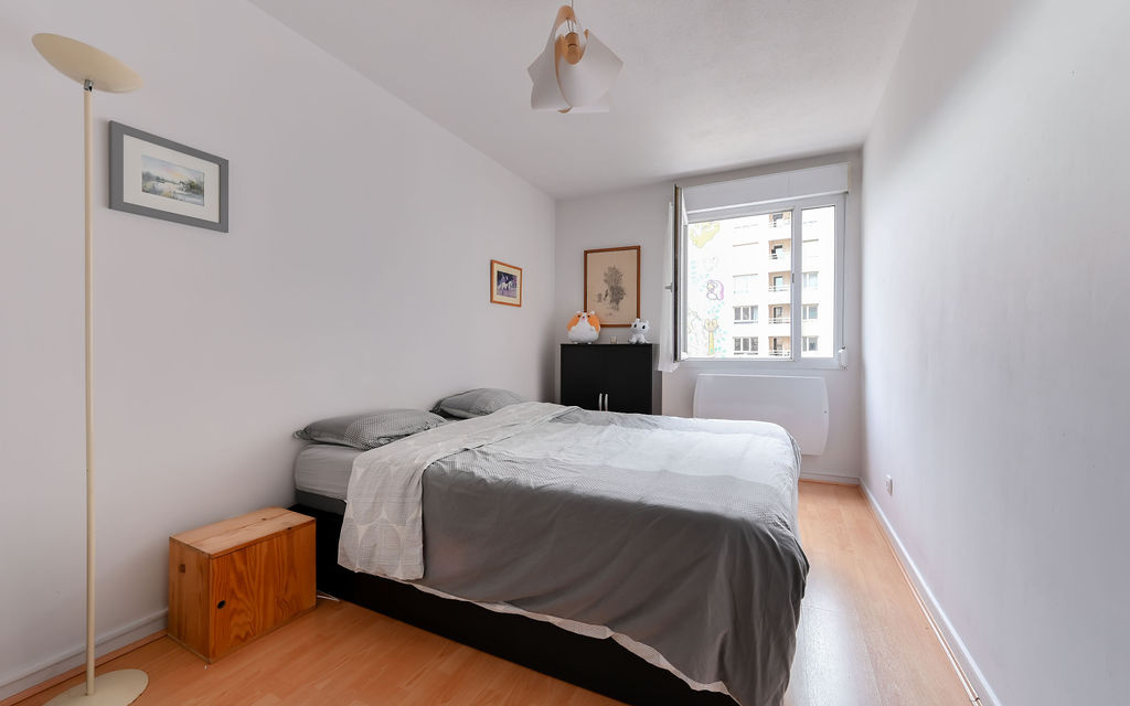 Le coin nuit, au calme, se compose de deux chambres (11,93 m² et 9,50 m²), se partageant une salle de bains ainsi qu’un WC indépendant.