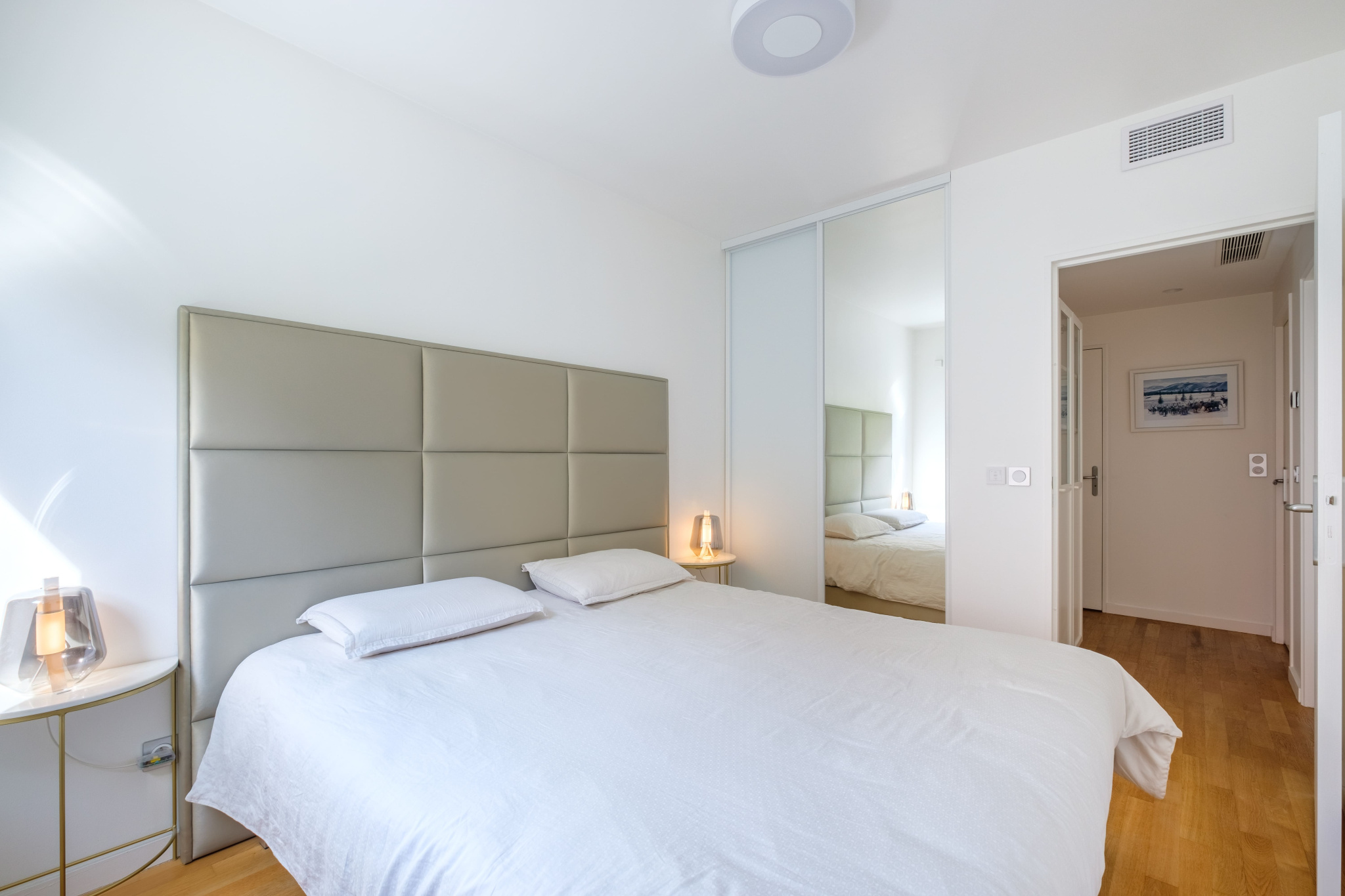L'appartement est composé d'un grand espace de vie et d'une cuisine américaine qui bénéficie d'un équipement haut de gamme, le tout éclairé par de larges baies vitrées ouvrant sur une belle terrasse de 11m2. Coté nuit, deux chambres se partagent une salle de bain avec baignoire et douche. Un toilette indépendant. L'appartement est entièrement climatisé par gainable silencieux. Son parfait état vous permet de l'acquérir sans avoir à effectuer le moindre travaux. En annexe, un garage double complète ce bien exceptionnel.