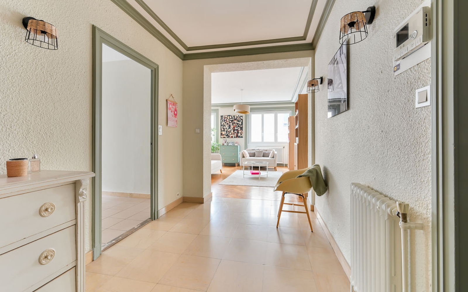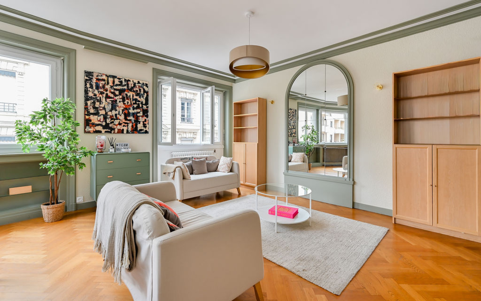 Lyon (69006)Rue Vendôme, à mi-chemin entre le métro Foch et le Parc de la Tête d'Or et à proximité immédiate des commerces et des transports, dans un immeuble PITANCE de standing, aux parties communes soignées. L' appartement est situé au 3ème étage avec ascenseur. Une belle entrée sépare l'espace de vie de la partie nuit. La cuisine de 11,5m2 à aménager selon vos envies, peut s'ouvrir sur le double séjour en retirant une simple cloison. Le salon d'angle de 32m2 (44m2 possible avec la cuisine) orienté au sud-est vous offre une luminosité exceptionnelle grâce à ses 5 larges fenêtres qui épousent la forme arrondie de l'immeuble. La partie nuit se compose de deux belles chambres de plus de 13m2 dont l'une avec dressing, d'une grande salle de bain avec baignoire et douche et d'un WC indépendant. L'appartement a été rénové en 2023: pose de doubles vitrages performants, électricité refaite et peinture intégrale. Votre sécurité est optimisée par une porte blindée et le gardien d'immeuble très apprécié. En annexe, une cave et un grenier. Possibilité de louer un parking (180€/mois) juste à côté. Les charges s'élèvent à 1100€/ trimestre (incluant l'eau et le chauffage colllectifs, le gardien et les parties communes). Pas de procédures en cours dans cette copropriété de 22 lots d'habitation.