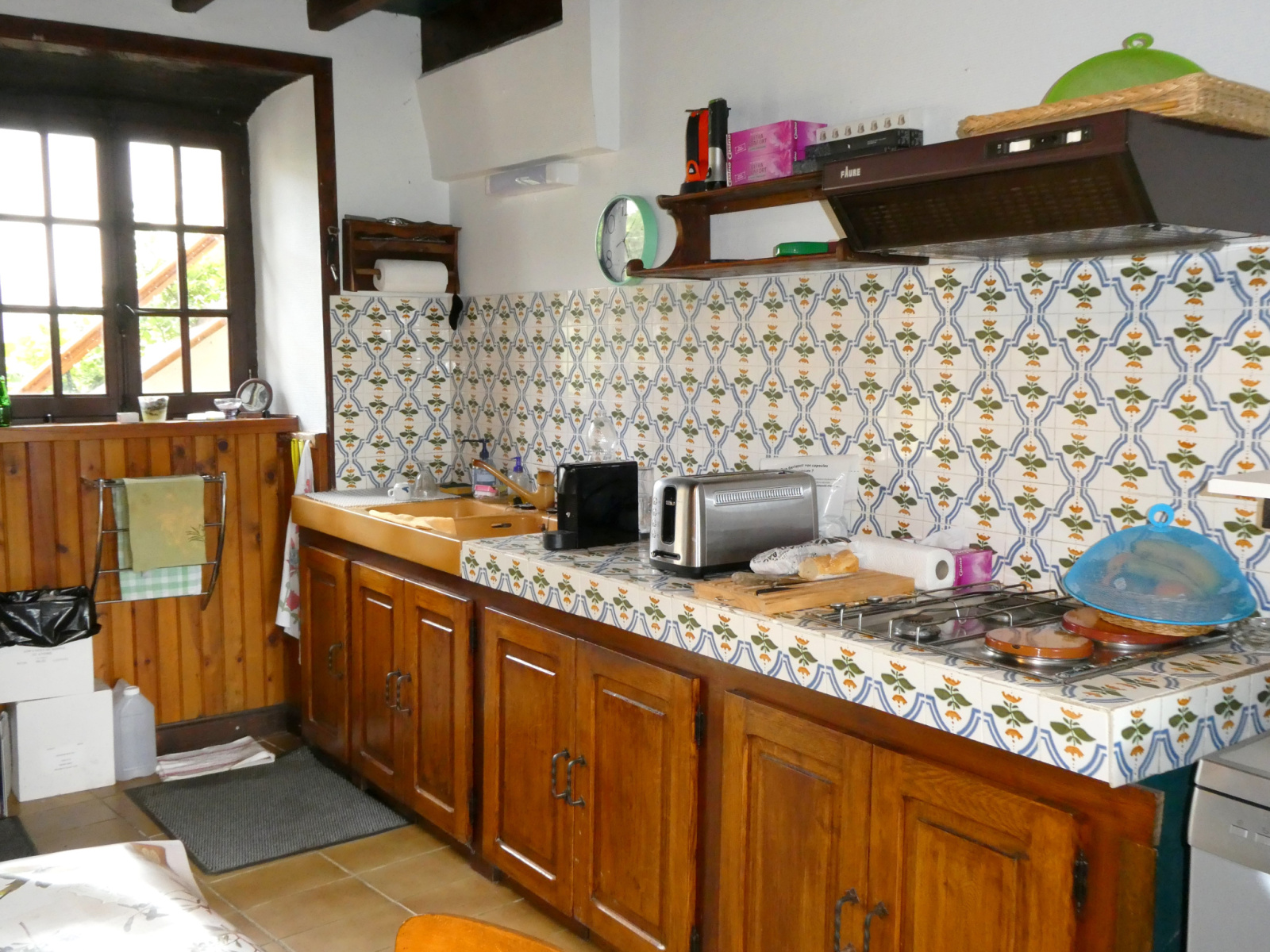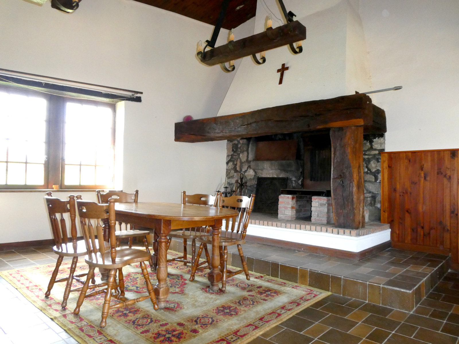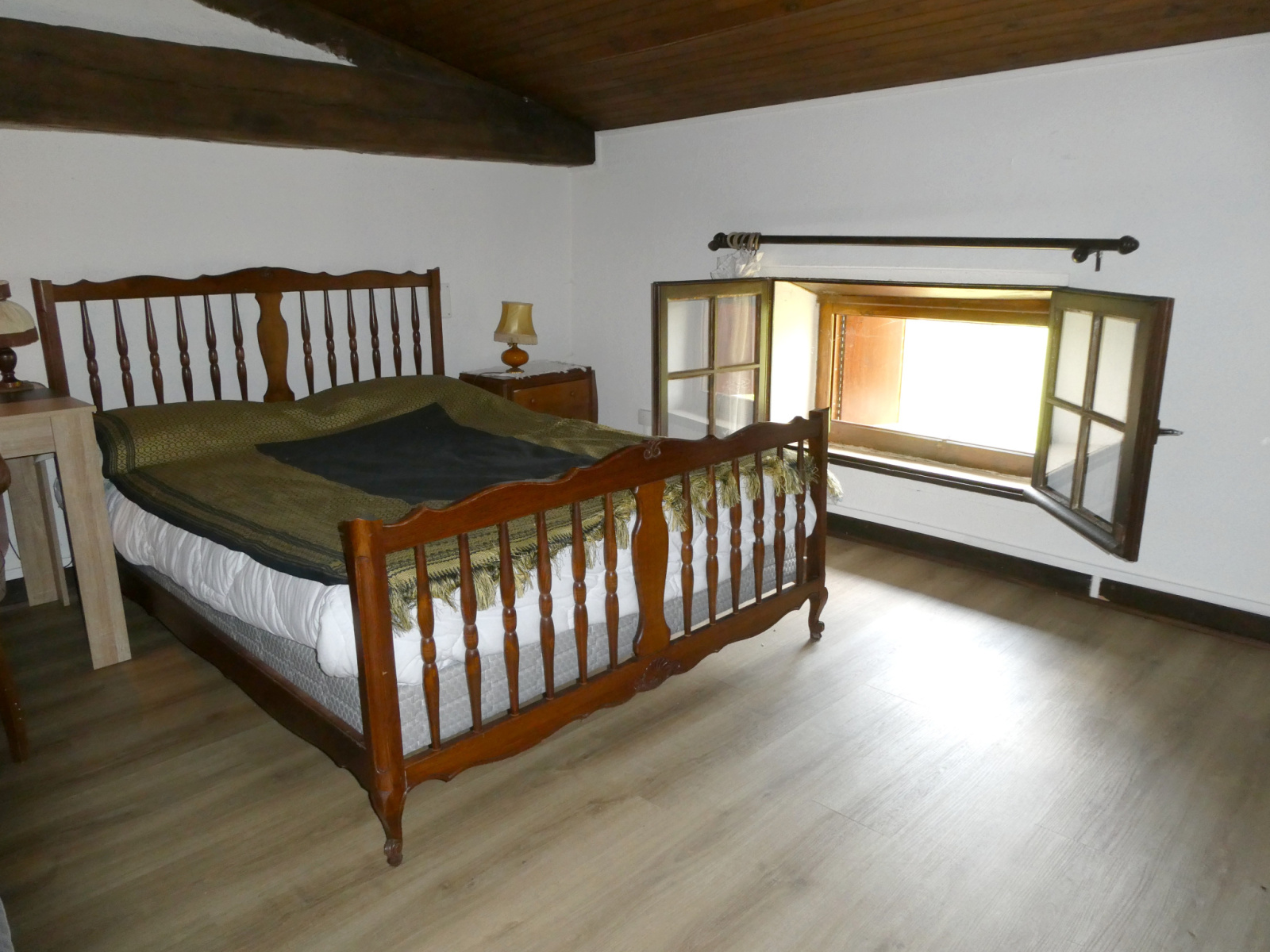 Elle se compose au RC d'un grand séjour avec cheminée monumentale et beau volume, une cuisine séparée ; à l'étage : 3 chambres, salle d'eau, WC et dégagement et une partie attenante aménageable. Elle bénéficie aussi de plusieurs dépendances dont une ancienne étable avec grange au-dessus, 2 hangars ouvrant sur la cour et pouvant servir de garages et grand cellier, l'ensemble articulé autour d'une cour centrale fermée. Toitures et assainissement autonome refaits recemment.