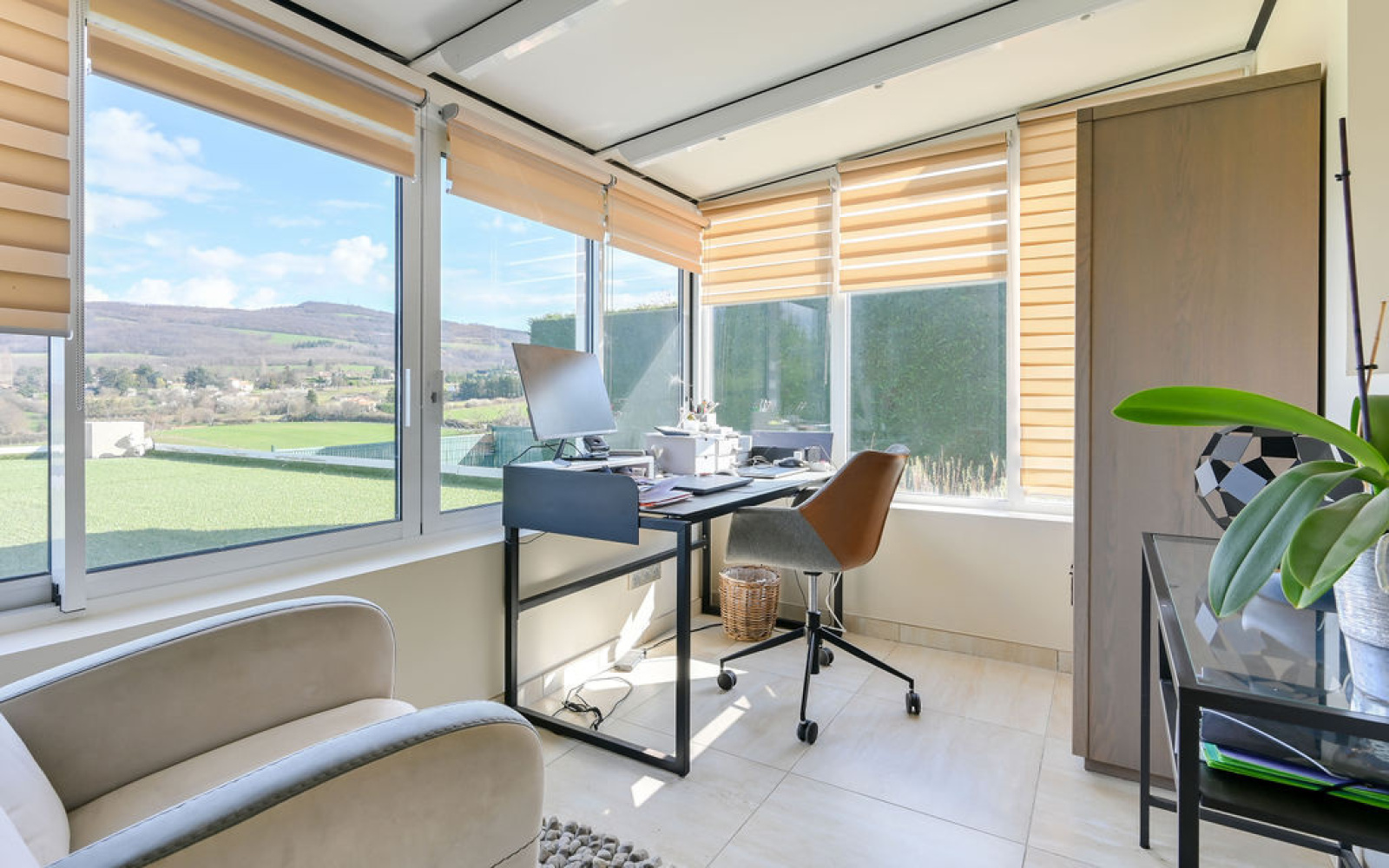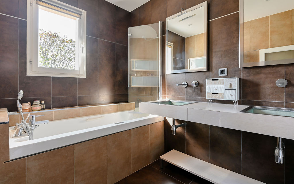 Au rez-de-jardin : Une belle pièce de vie lumineuse avec cuisine équipée, ouvrant sur la terrasse, le jardin et la piscine, une chambre, un bureau ainsi qu’un WC indépendant.