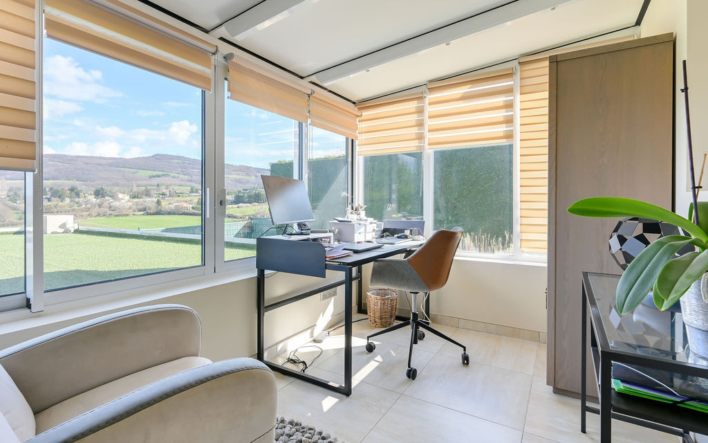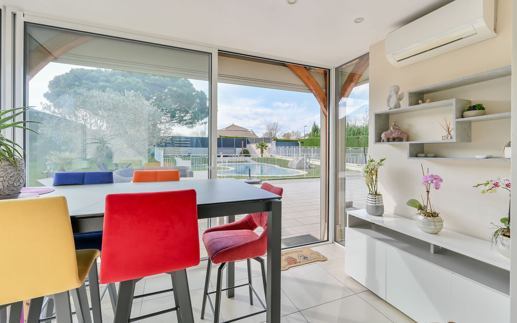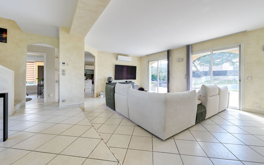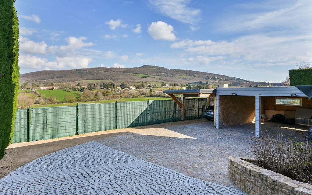Lissieu (69380)Maison climatisée de 175 m² habitables sur un terrain clos de 1 289 m², offrant de belles prestations avec piscine, jacuzzi, terrasse, carport, atelier et terrain de pétanque.