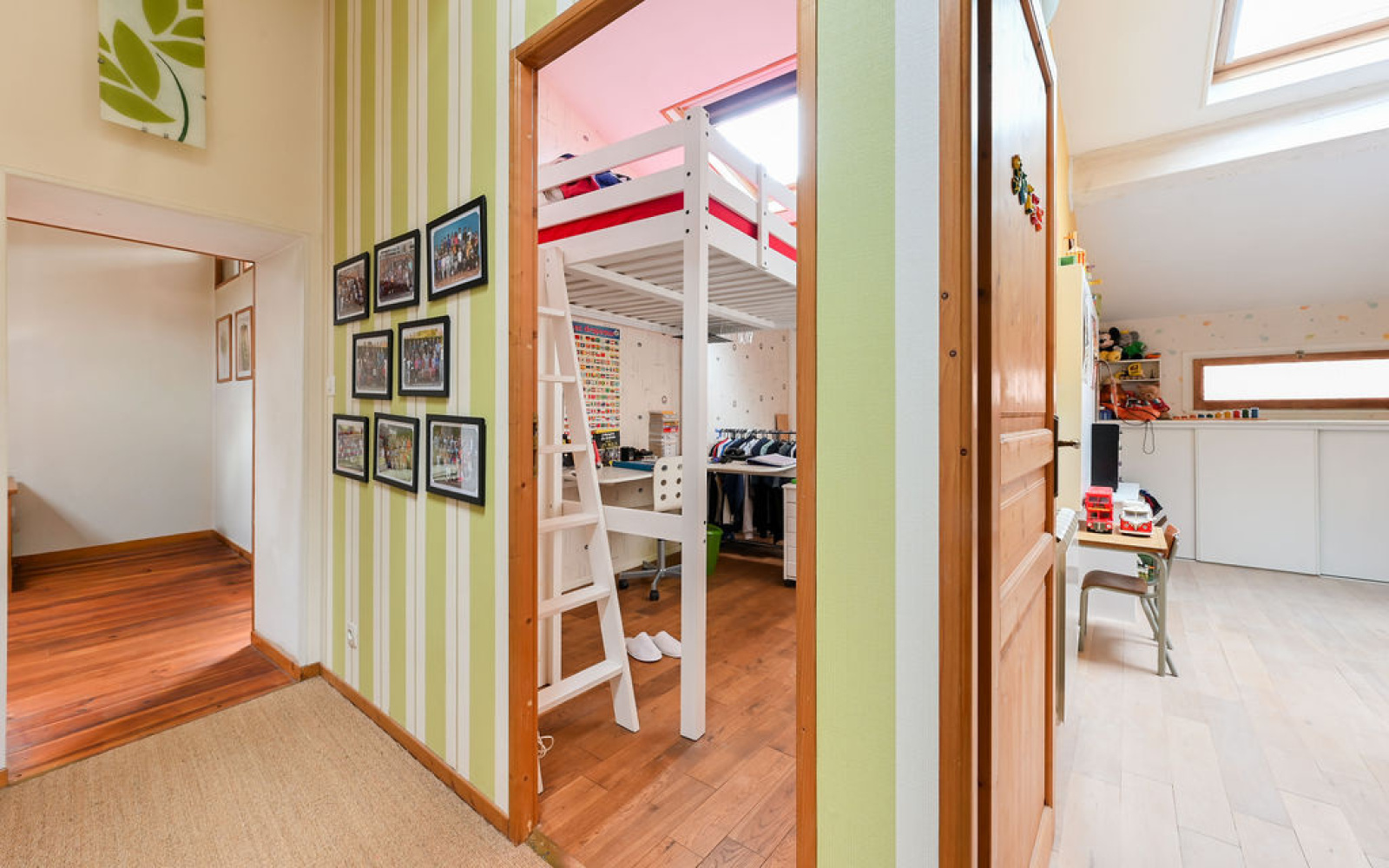 - Dernier étage : 3 chambres, salle de jeux, salle d’eau avec WC