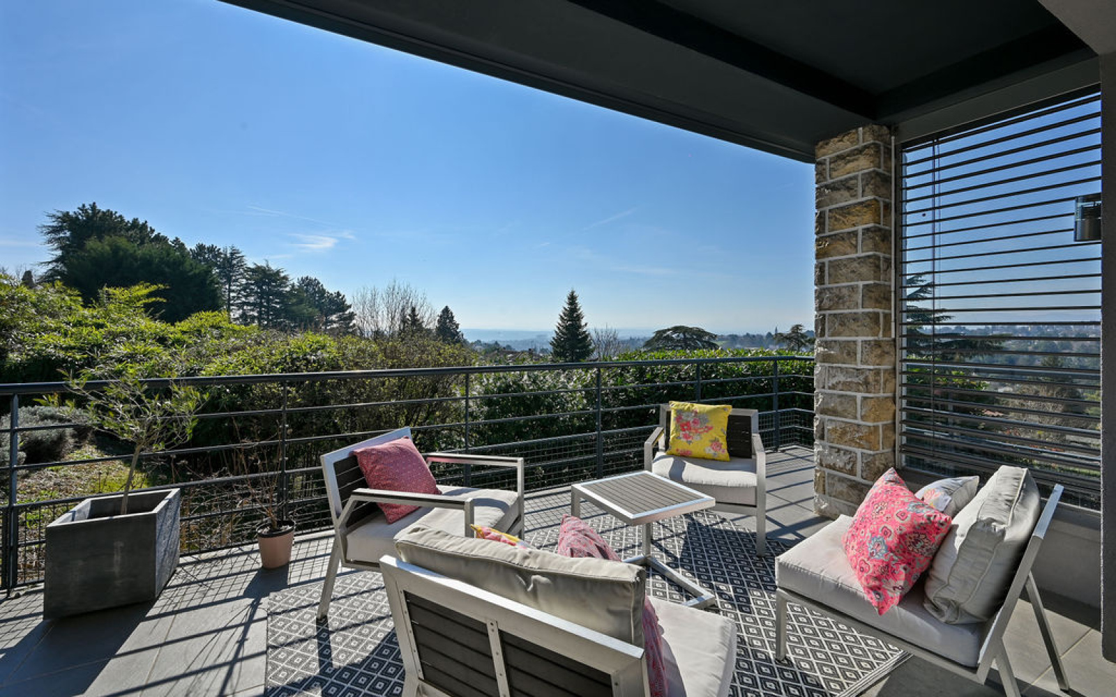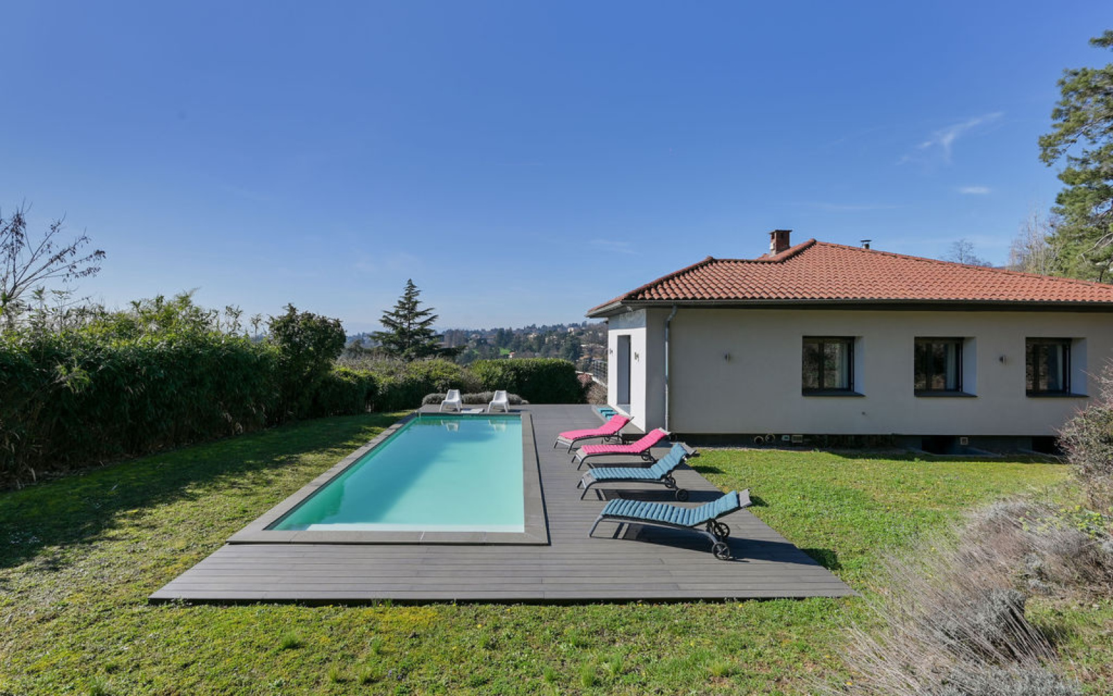 Cadre et vue : très belle vue dégagée, exposition sud-ouest, terrain généreux et piscine