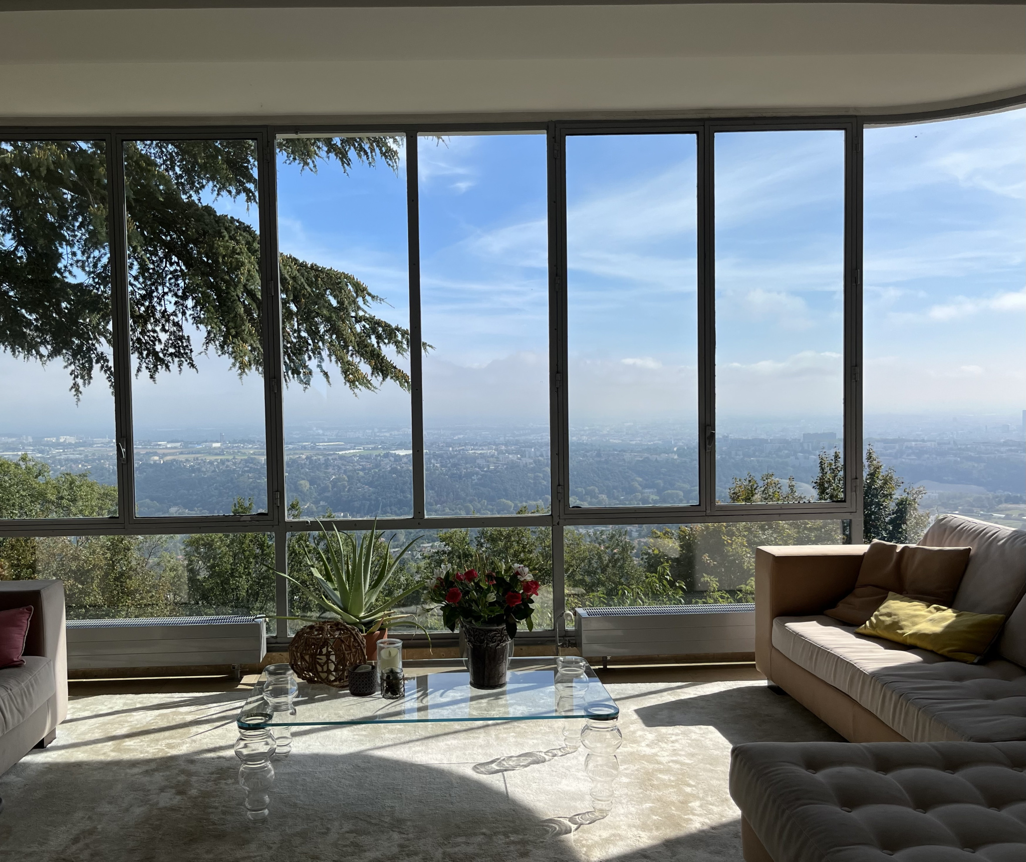 Au RDC : Une belle entrèe, une cuisine équipée ouverte sur la salle à manger, un salon avec un Bow window offrant une vue imprenable sur Lyon, donnant sur une terrasse. Un bel escalier en pierre nous emmène au 1er étage