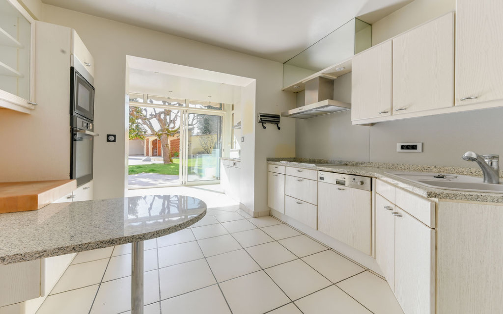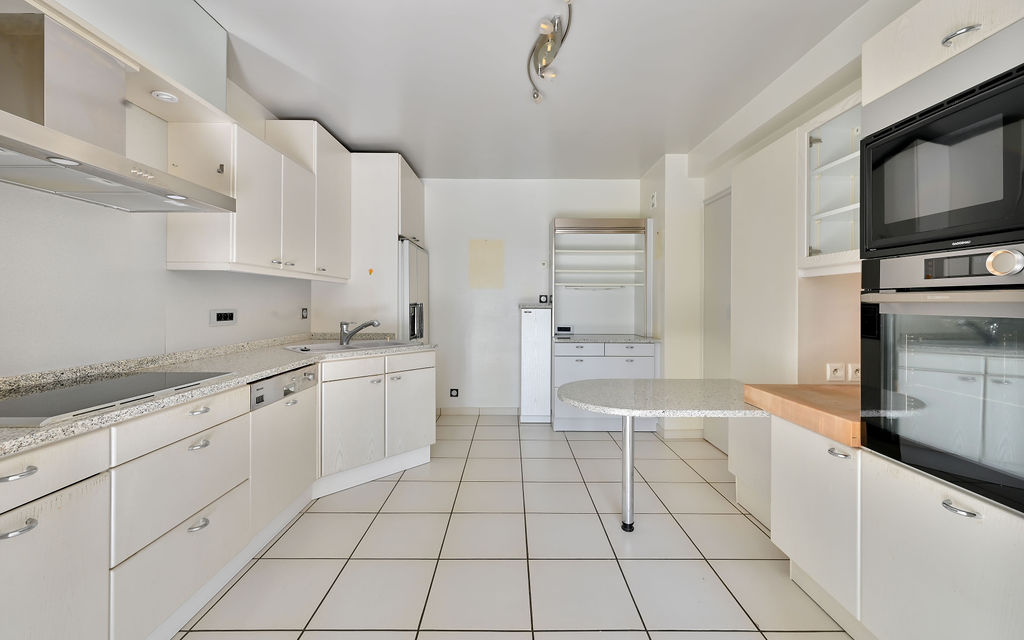 En sous-sol, grand garage et grands espaces carrelés pouvant servir de salle de sport ou salle de jeu.