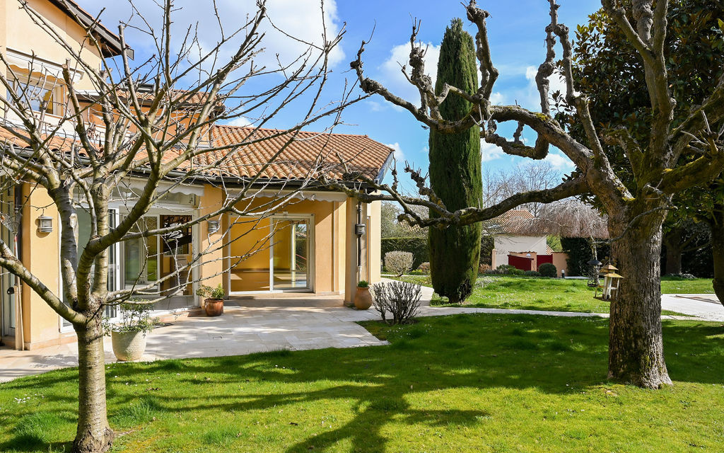 Saint-Cyr-au-Mont-d'Or (69450)Très belle construction pour cette maison traditionnelle implantée sur un terrain plat et paysagé de 1 500 m², offrant un cadre de vie privilégié avec piscine chauffée, pool-house, terrain de pétanque, abri bois et système d’arrosage automatique, dans un environnement calme et sécurisé au fond d'un impasse.