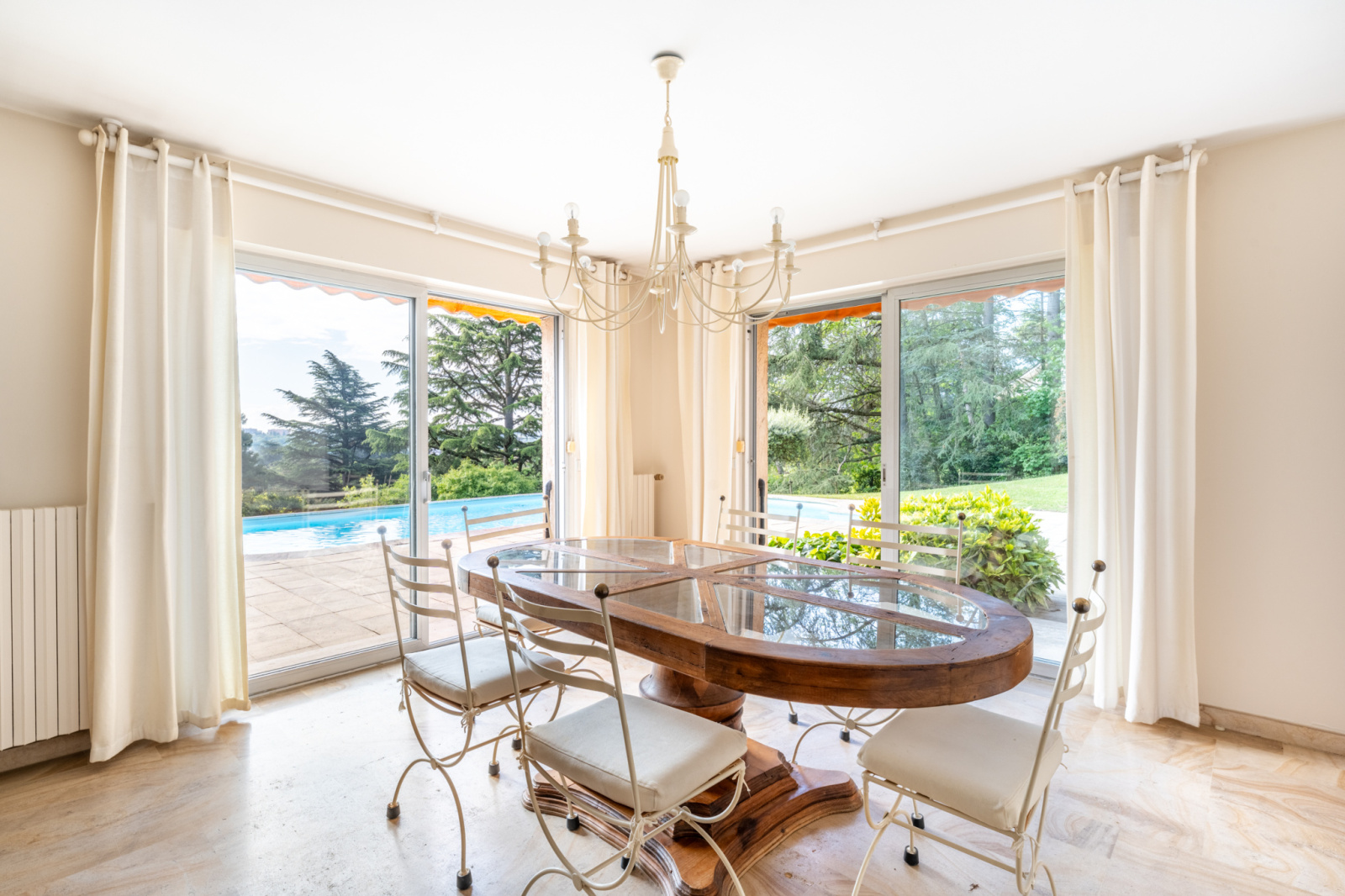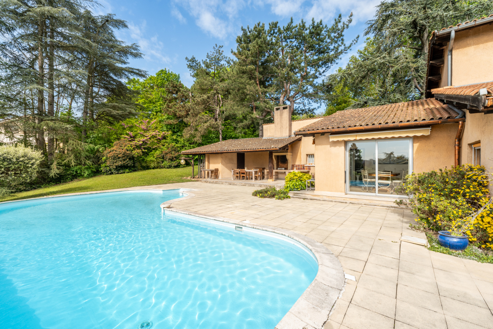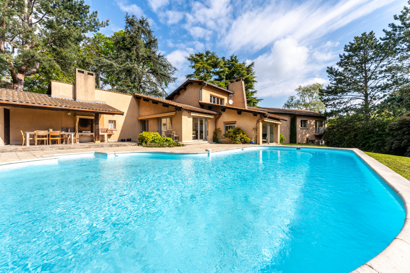 Saint-Cyr-au-Mont-d'Or (69450)SAINT CYR AU MONT D'OR, maison familiale de 1978 de 220 m² habitables environ, de la surfce en reserve, sur terrain de 2 900 m² environ avec piscine située dans un quartier calme et résidentiel avec belle vue sur Fourvière. Elle se compose d'une entrée, d'une belle pièce de vie avec cheminée et belle hauteur sous plafond, un escalier nous mène vers un bureau, une salle à manger donnant sur terrasse ainsi qu'une cuisine séparée avec arrière cuisine. 4 chambres dont une suite parentale avec dressing et salle de douche, une salle de bains, toilettes séparées, dressing, une lingerie. En annexes, un grand garage ainsi qu'un sous sol complet de plus de 200 m² au total avec cave, chaufferie, home cinema ou salle de sport. Un pool house ainsi qu'une petite pièce de rangement complètent ce bien. Rafraischissement à prévoir