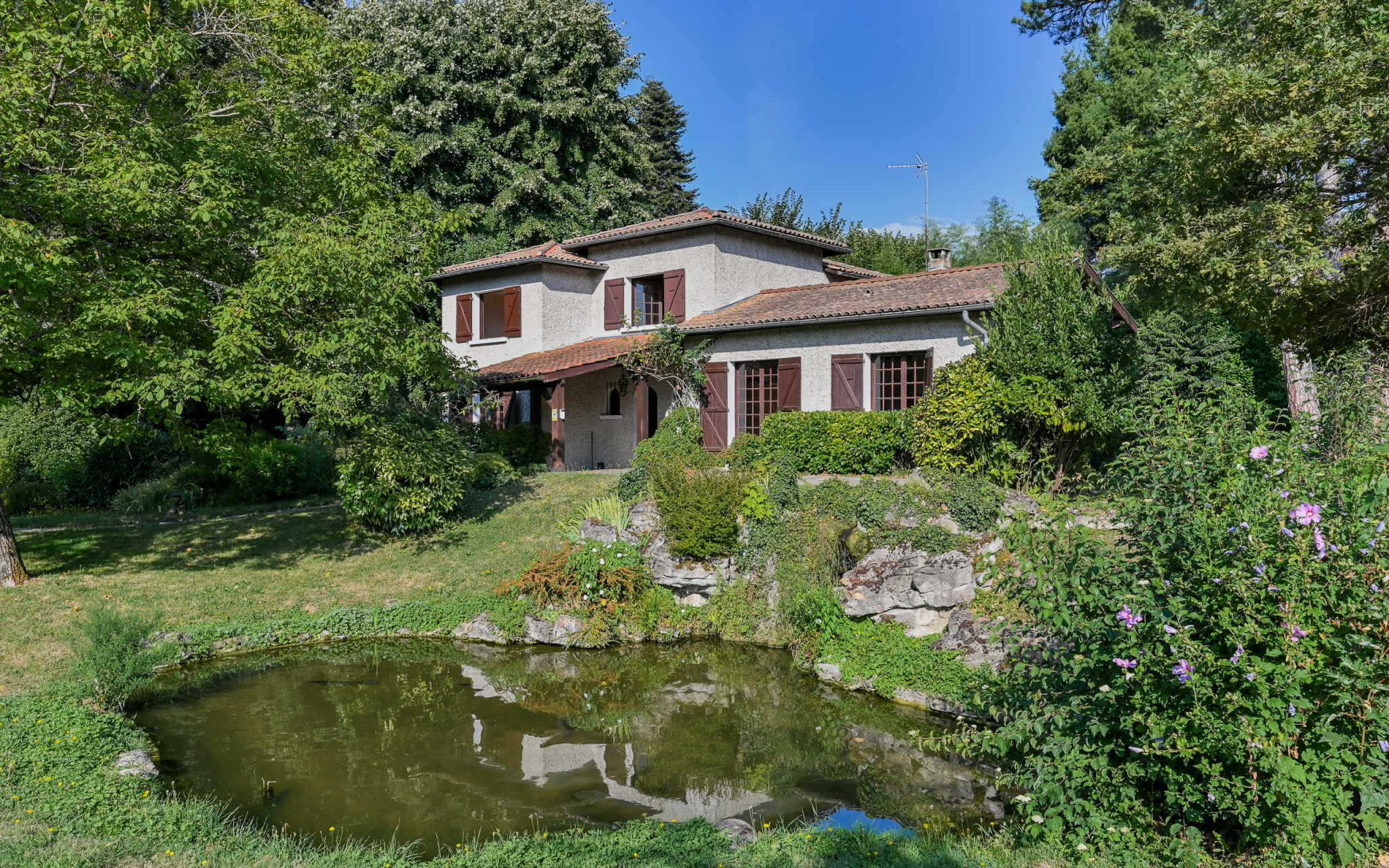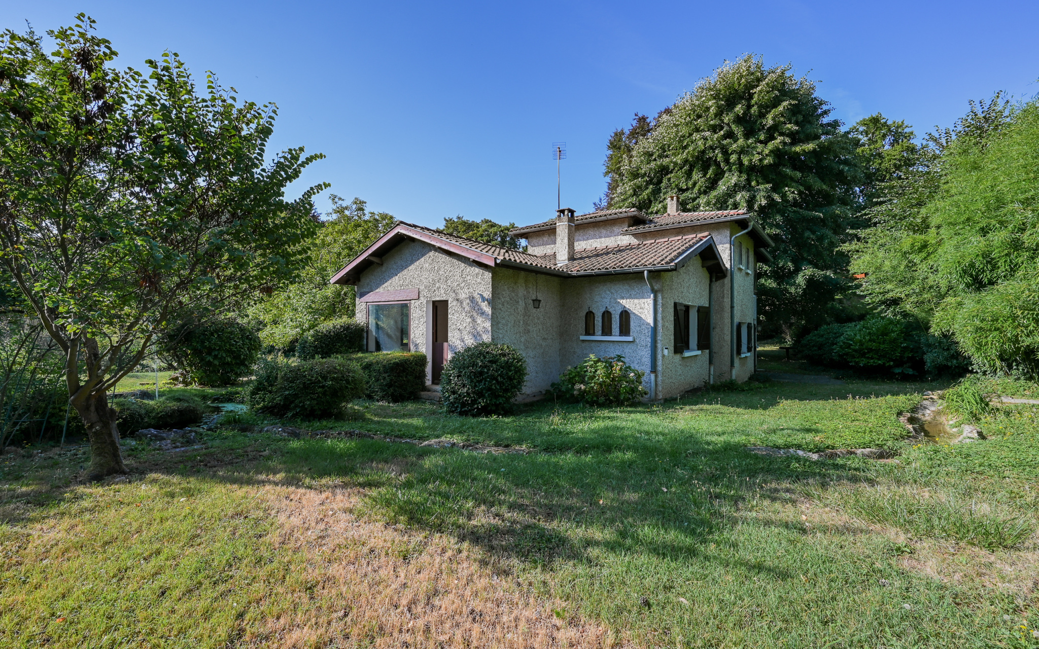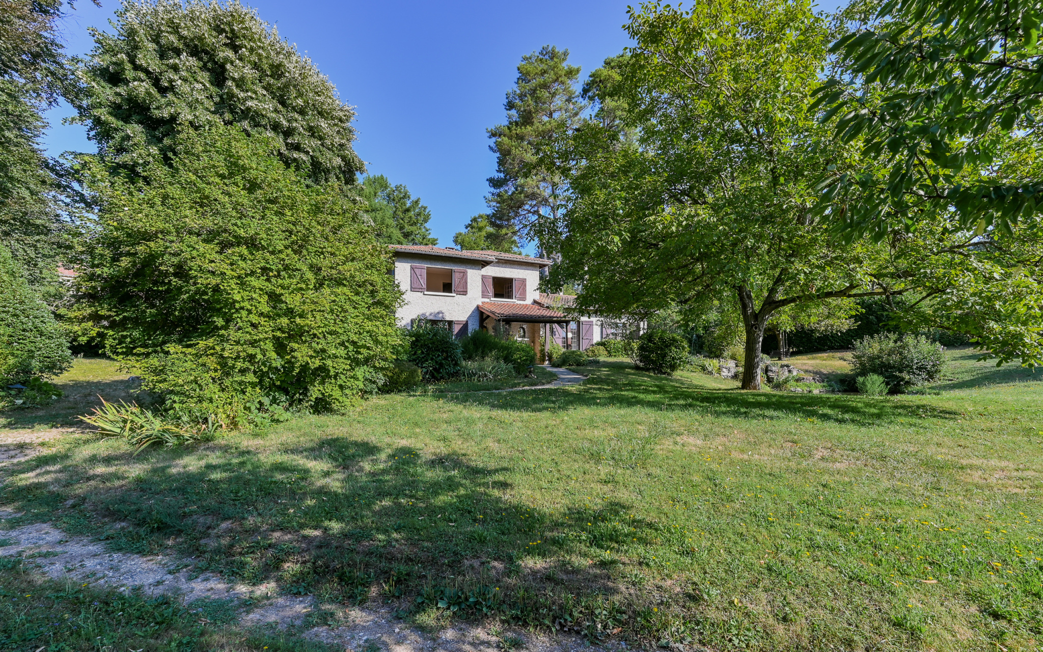 Saint-Cyr-au-Mont-d'Or (69450)Environnement calme et privilégié pour cette maison des années 70 à rafraichir mais avec un fort potentiel, de beaux volumes et une possibilté d'extension de 100m2, édifiée sur un très beau terrain paysagé de 3105m2 agrémenté de 2 bassins et piscinable.