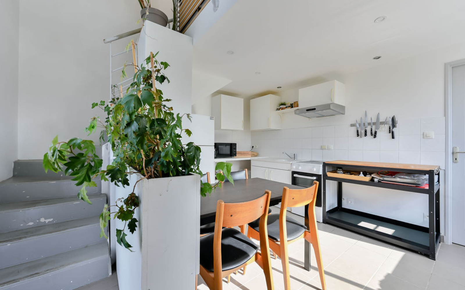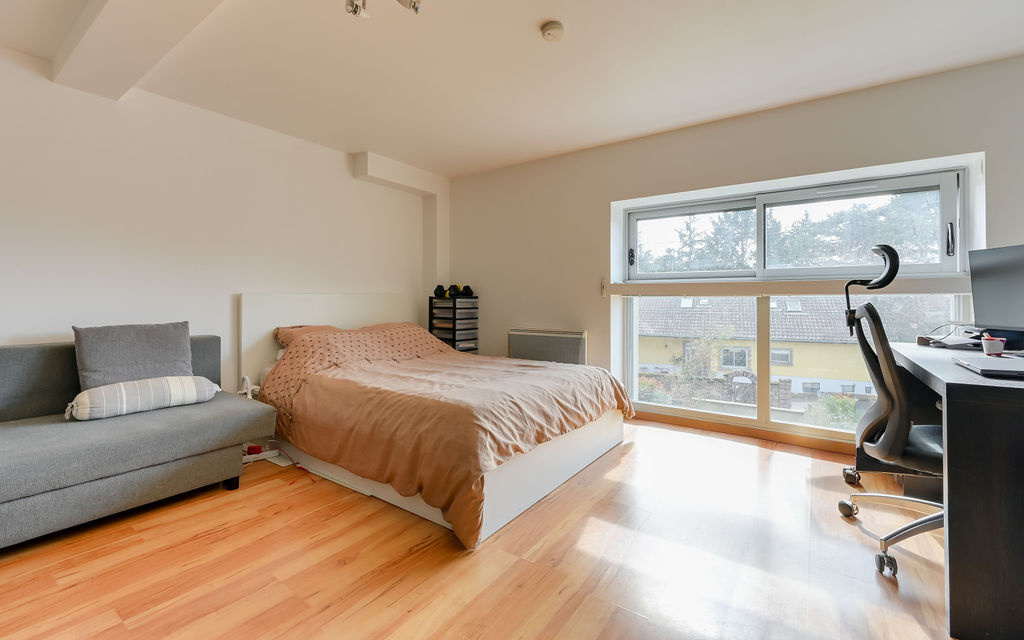 L’appartement s'articule autour d’une pièce de vie lumineuse ouverte sur l’extérieur. L’espace est organisé autour d'une cuisine et d'un coin repas. Grâce à une mezzanine très confortable, le bien comprend également un coin nuit distinct, offrant une séparation appréciable ainsi que la possibilité de se créer un coin bureau / salon TV.
