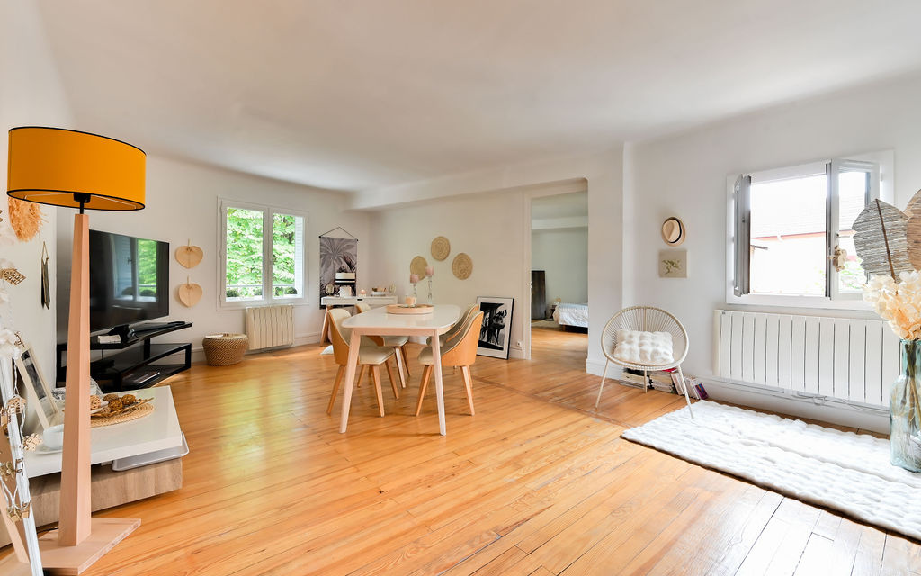 Saint-Cyr-au-Mont-d'Or (69450)Dans le centre du village de SAINT CYR AU MONT D'OR, Appartement de 84 m² au premier et dernier étage d'une petite résidence ancienne. Aucun vis à vis. Belle pièce de vie de 42 m². 2 chambres et une salle d'eau. 1 cave complète ce bien. Trés bon état général.