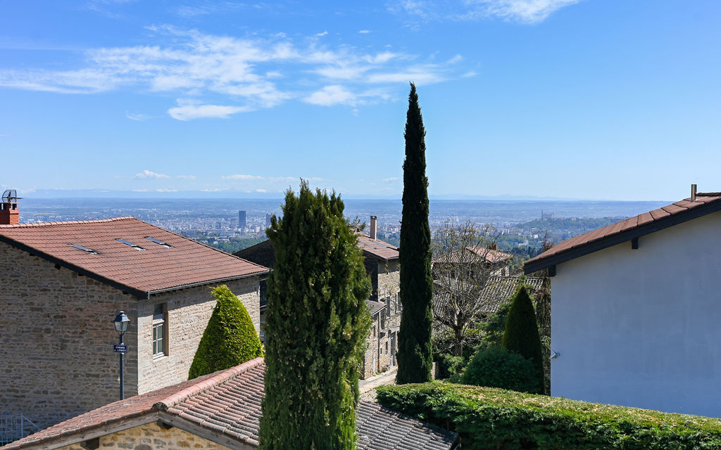 À l’étage, l’espace nuit se compose de 3 chambres bénéficiant d’une vue exceptionnelle sur Fourvière et la chaîne des Alpes, d’un dressing, d’une salle de bains et d’un WC indépendant.