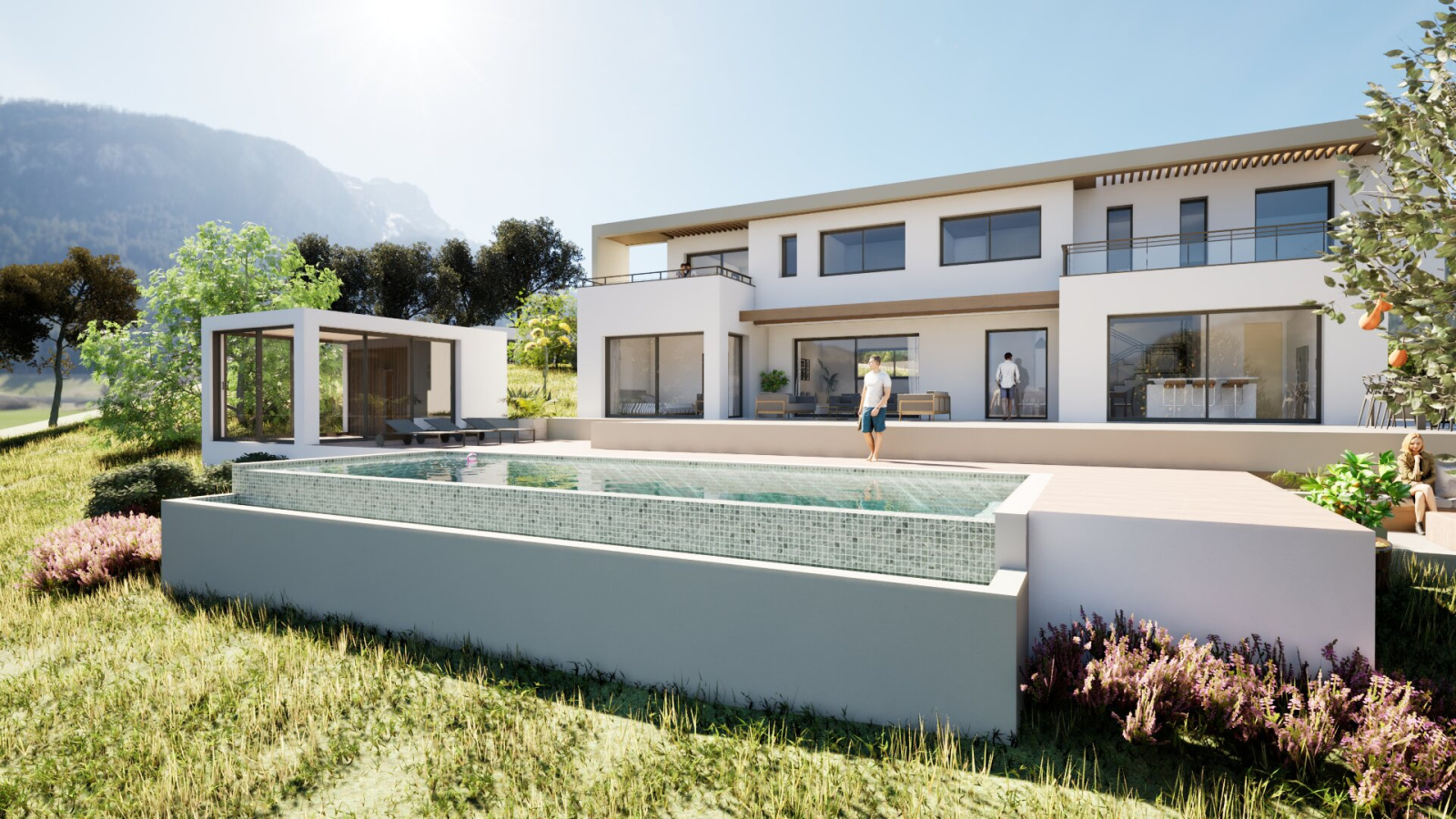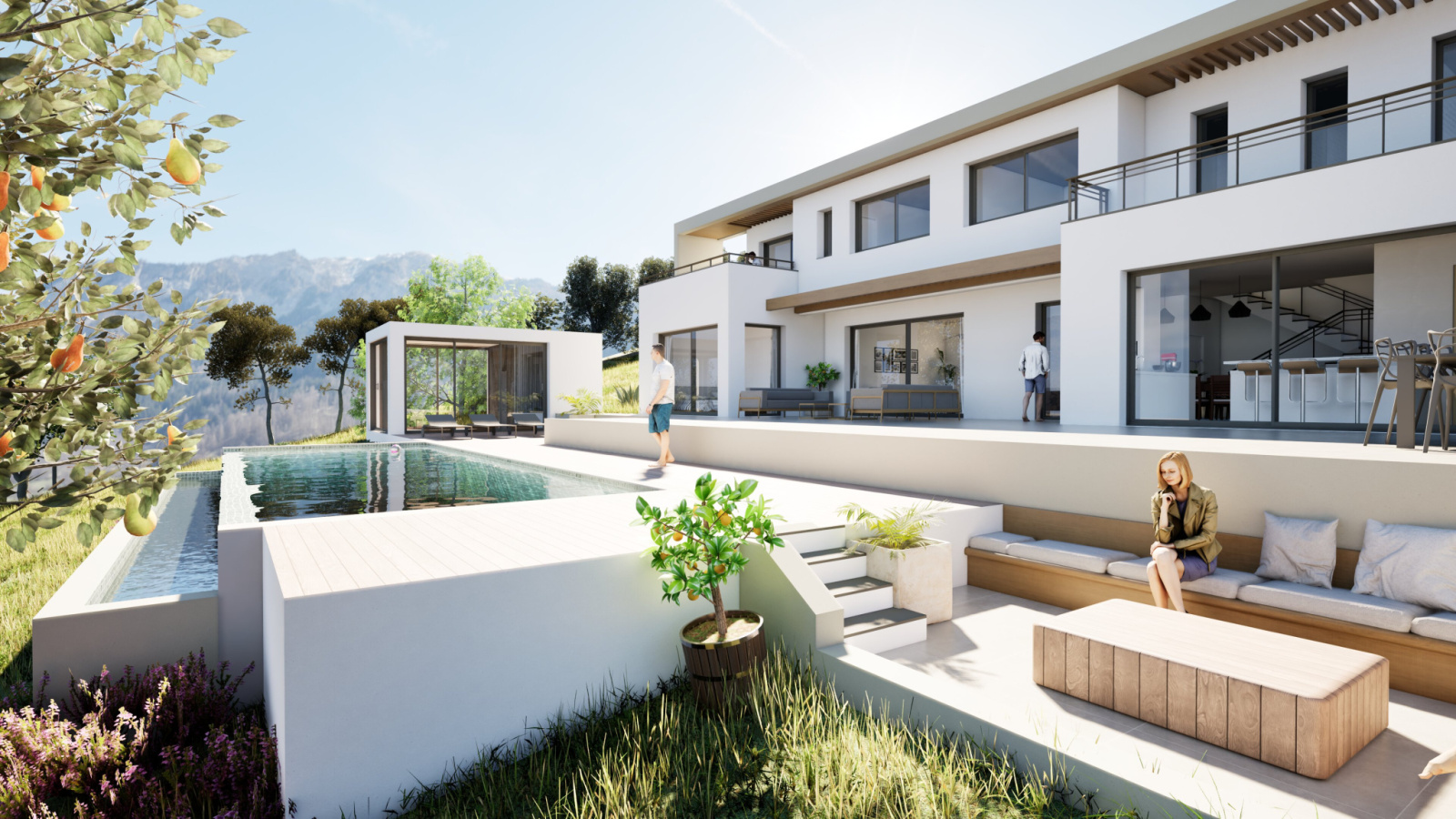 Piscine à débordement de 12*4m avec sa terrasse de 90 m²