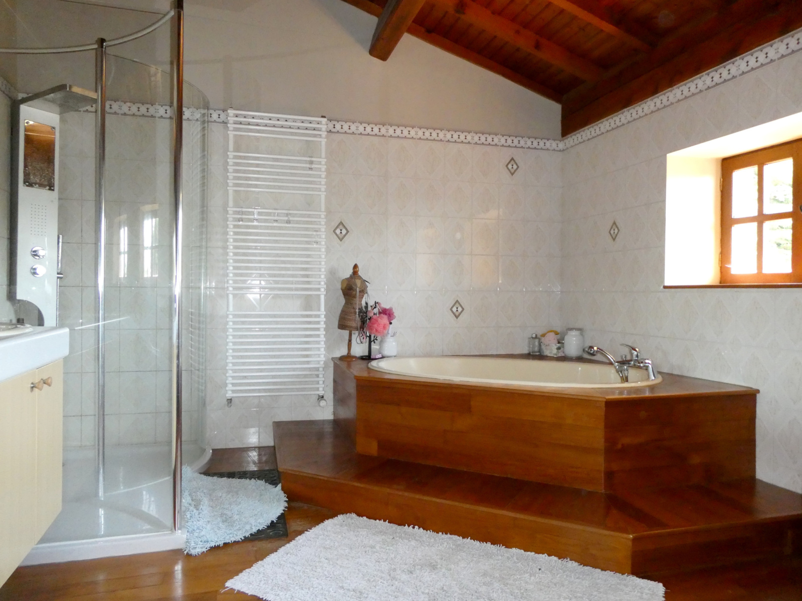 A l'étage : 3 chambres dont une avec dressing, une immense salle de bains, WC et dégagement. Vous disposerez également d'un garage fermé, d'une belle cave voutée, chaufferie ainsi que d'un hangar donnant sur une cour fermée et 1100 m² de terrain attenant.