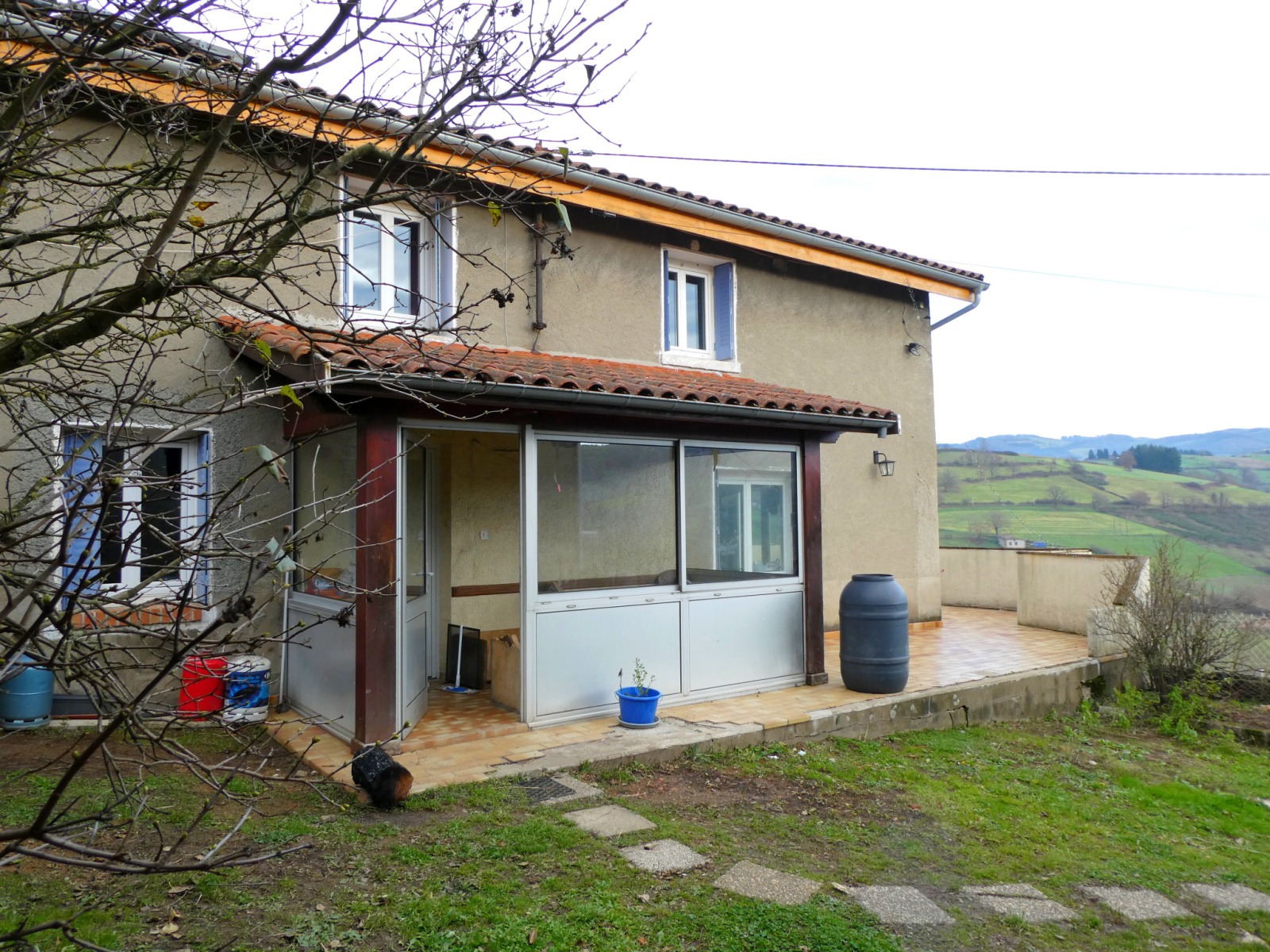 Saint-Genis-l'Argentière (69610)Prox STE FOY L'ARGENTIERE - EXCLUSIVITE - Ancienne ferme en partie rénovée bénéficiant d'une vue dominante et d'une bonne exposition, elle est située non loin de tous les commerces/écoles. Elle vous offrira au RC : une véranda en entrée, séjour, cuisine, salle de bains, WC ; à l'étage : 4 chambres et dégagement. L'habitation est équipée d'une pompe à chaleur Air/eau et de panneaux solaires thermiques. Elle dipose également de plusieurs dépendances dont une écurie/grange aménageable ; un garage, 2 caves et + un grand hangar ouvrant sur une cour fermée. Enfin cette ferme bénéficie de plusieurs parcelles de terrains en nature de pré et de bois au total plus d'1,8 ha, dont plus de 4 500 m² constructibles ! A découvrir sans tarder avec l'agence ARLIM 04 74 70 58 58 - 06 74 89 09 77